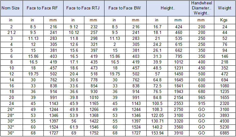 Dimensión cara a cara: DIN3202, ASME B16.10, API6D, API594, GOST3326-86